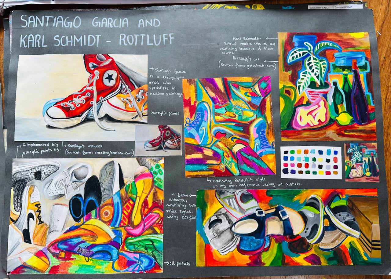 As part of the Cambridge IGCSE Art & Design curriculum, I explored diverse media and techniques including graphite, watercolor, acrylic, and mixed-media compositions. My coursework emphasized observational drawing, conceptual development, and visual storytelling: skills that deepened my understanding of composition, balance, and expression. Through thematic projects on pipes and plumbing and disorder, I learned to translate abstract ideas into tangible visuals, blending technical precision with creative interpretation.